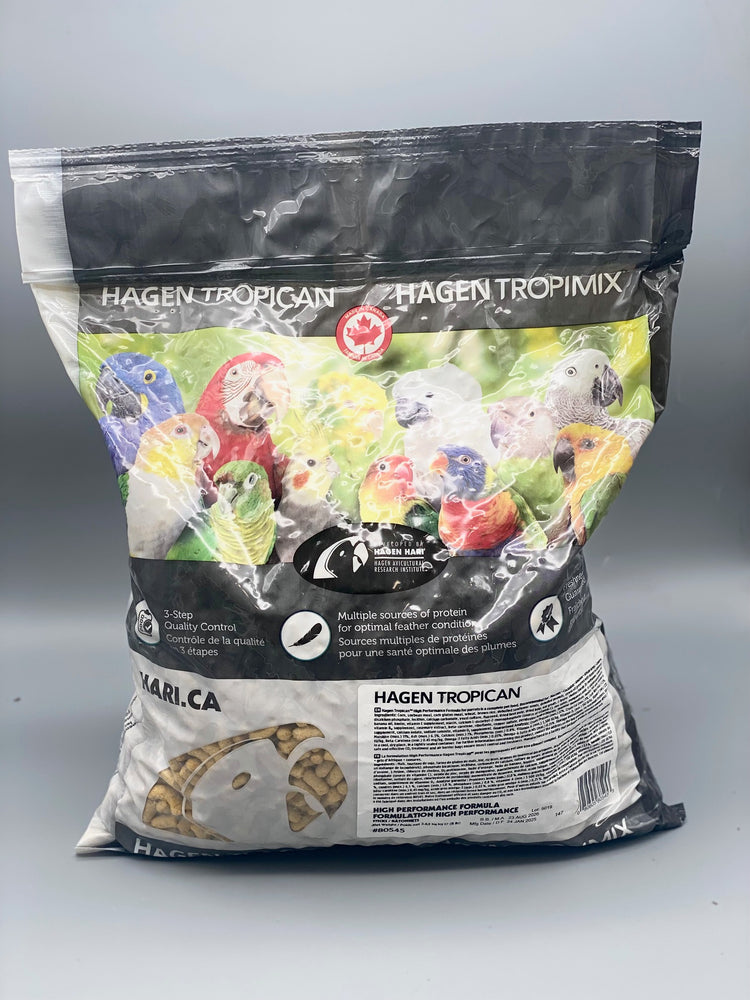 TROPICAN High Performance Formula is a complete feed that provides your parrot with all essential nutrients. As a guideline: Depending on the parrot species, your bird should receive 5-10% of its body weight in grams as total daily feed amount. At least 70% of the daily ration should consist of TROPICAN to ensure optimal nutrient supply. You can supplement the remaining requirements with fresh food. Suitable options include fresh vegetables, fruit (in small quantities), greens, and our vitamin-rich and low-calorie Claus sprouted seeds in a jar (suitable for various species). For species with increased calcium requirements (such as African Grey parrots), we recommend supplementing with PRIME or CLAY-CAL.