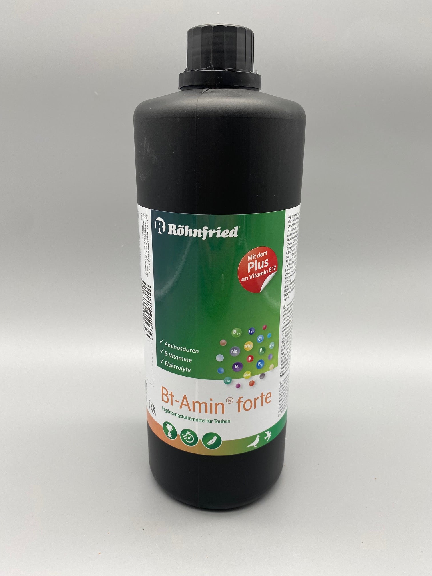 RÖHNFRIED® Bt-Amin® forte ist ein hochdosiertes Vitamin-B-Präparat für Vögel, das Aminosäuren, Elektrolyte und B-Vitamine in einer speziellen Zusammensetzung enthält. Es unterstützt die Blutbildung, Nervenstärkung, Muskulatur und das Immunsystem, besonders während der Brutsaison und der Mauser. Es enthält unter anderem Wasser, Propylenglycol, Fructose und verschiedene Vitamine und Aminosäuren. Die empfohlene Dosierung beträgt 15 ml pro Liter Trinkwasser.