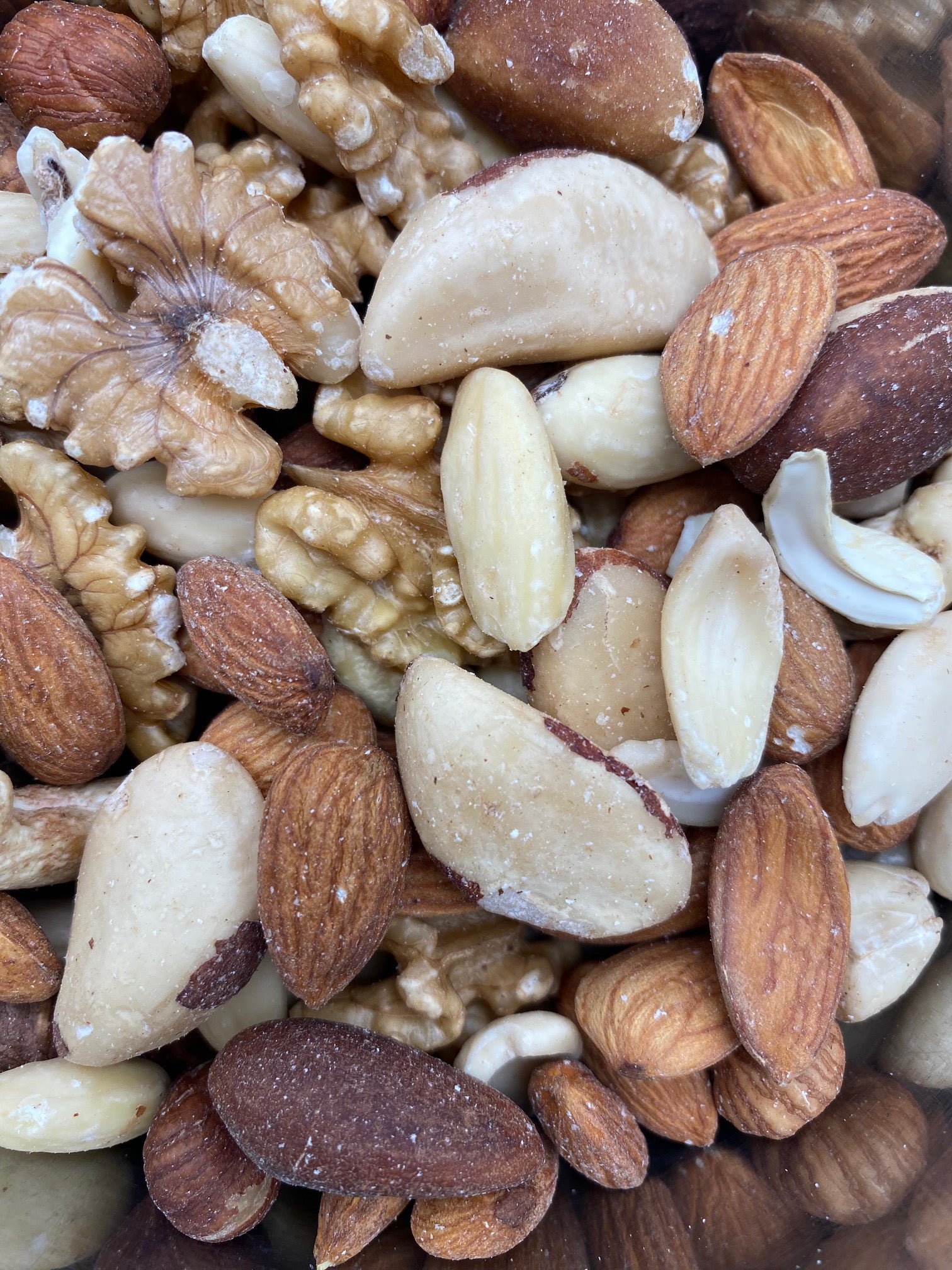 Mandeln, Cashew, Paranüsse, Mandeln blanchiert, Walnüsse, Haselnüsse.