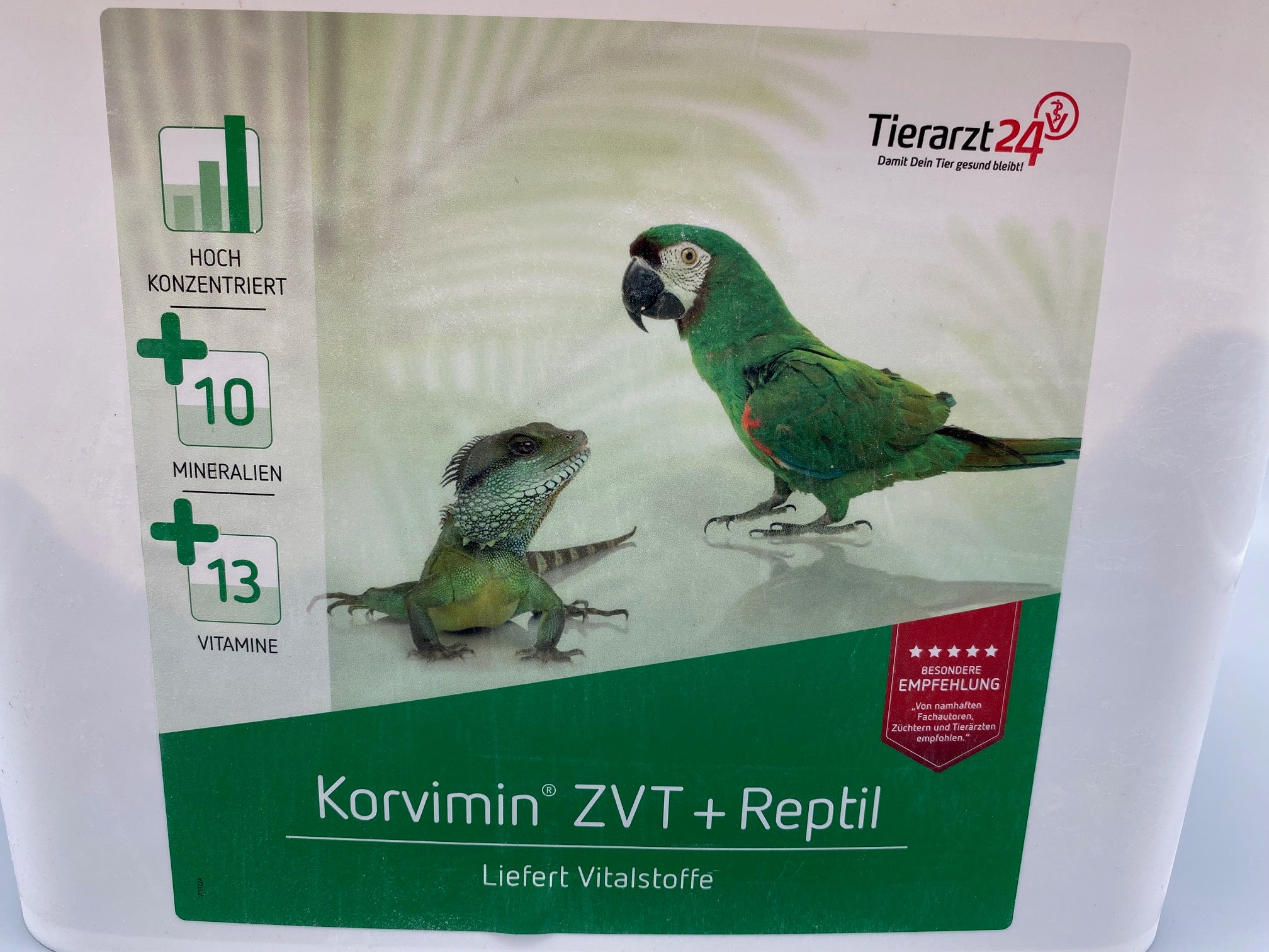 Korvimin® ZVT + Reptil ist ein von Tierärzten entwickeltes Mineralfuttermittel für Vögel und Reptilien. Die perfekt ausgewogene Mischung liefert Ihrem Tier lebenswichtige Vitamine, Aminosäuren, Mengen- und Spurenelemente und überzeugt unter anderem durch ein sehr günstiges Calcium-Phosphor-Verhältnis. Wir geben Korvimin täglich über das Körner- oder Weichfutter.
