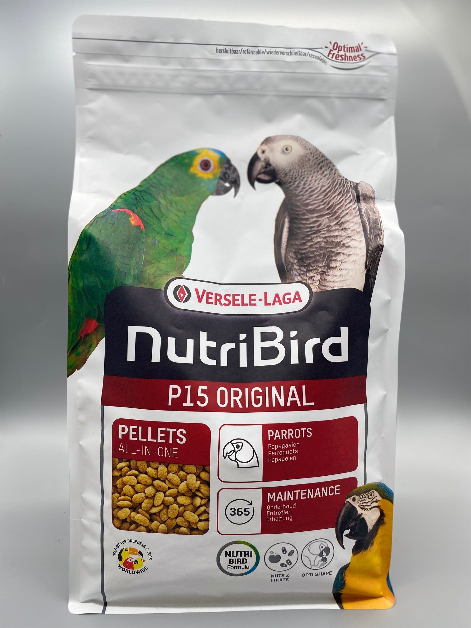 NutriBird P15 Original ist ein ausgewogenes, vollständiges Pflegefutter für Papageien. Es besteht aus wissenschaftlich formulierten Pellets mit ausgewähltem Getreide, frischem Obst und Erdnüssen. Es ist vollständig verwertbar und verursacht keinen Verlust. Das Futter enthält Florastimul, welches die Darmflora unterstützt und vor Darmstörungen schützt. Wenn Ihr Vogel nicht an Pelletfutter gewöhnt ist, sollte die Umstellung schrittweise erfolgen.